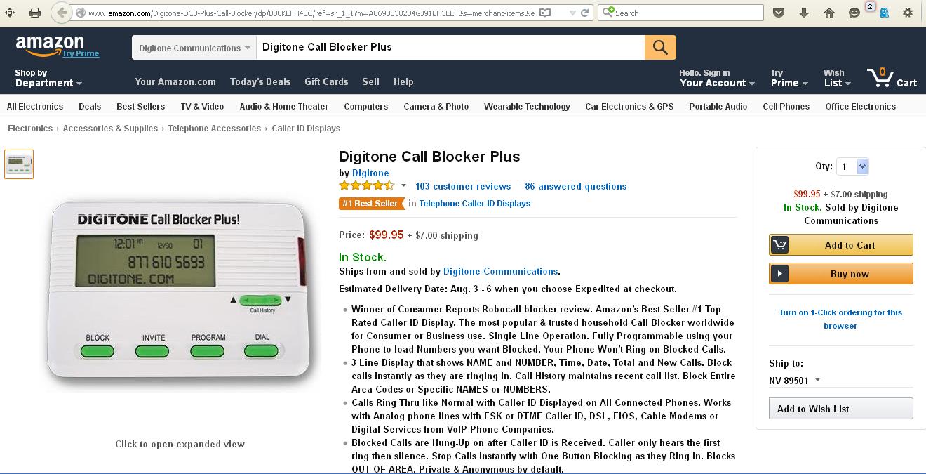 After the September Issue of Consumer Reports Magazine article reviewing Call Blockers the Digitone's Call Blocker Plus! was the Best Seller in Telephone Caller ID Displays. Visit 2015 Consumer Reports Magazine