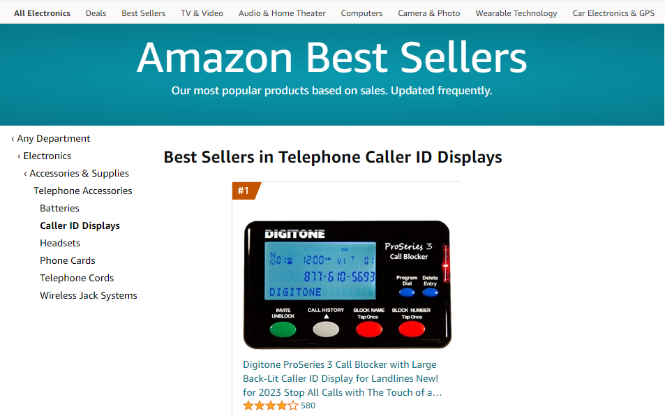 Digitone’s ProSeries 3 Call Blocker™ becomes The Best Seller in less than a month in Amazon's Electronics Caller ID Displays Category Return to top