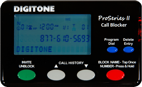 Digitone’s ProSeries 3 Call Blocker™ (DPS3) comes preloaded to block Millions of Out of Area, Private, Anonymous, SPAM, No Number, Fake Exchanges and Trillions of Spoofed Names like V+ numbers using Digitone’s Patented matrix system. Just connect your Phones and you’re ready to go as Digitone’s DPS3 can operate right out of the box. Includes Name Blocking with its own Red Button and instant Red Number Button Blocking. New press and hold capability takes you to stored Blocked Lists for a quick review or editing. New Level Checking of Blocked Names, Blocked Numbers, Exchanges or Invited calls allows users to prioritize processing of calls. The ProSeries 3 also has Patented repeated Caller ID method to the connected phones, First Ring Supression for blocked calls and much, much more available now here at Digitone's Order Page. Return to top