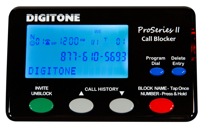 The Original Phone Call Blocker - Block all unwanted calls with Digitone's ProSeries Blocker model. The ProSeries Call Blocker can block calls from Cell Phones, Faxes & Telemarketing Numbers 800, 855, 866, 877, 888 and Exchanges like 555, 111 and 000 not blocked by the National Do Not Call registry or your Telephone Service Provider. Works with your Caller ID Service to Automatically Eliminate All Unwanted Callers! Block calls originating from any country or area code.
